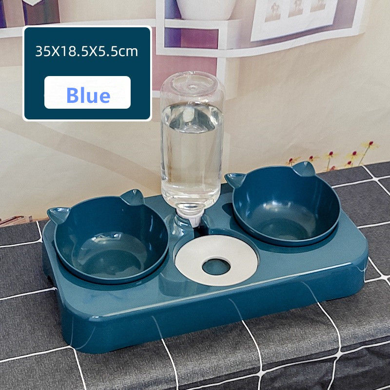 Pet Double Bowl Anti-Wet Mouth Neck Guard ชามอาหารสุนัข Multi-Purpose Automatic Drinking Bowl